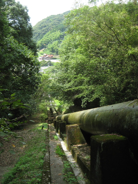 発電効率から言えば、単一勾配の方が良いに決まっている。勾配変わりや屈曲があればそこで水流が乱れるから、エネルギーをロスしてしまう。恐らく山腹を深く削ったり土を盛ったりなどと工事量が増えるので、多少の効率ロスには目をつむって自然の地山に合わせて敷設したのだろう。