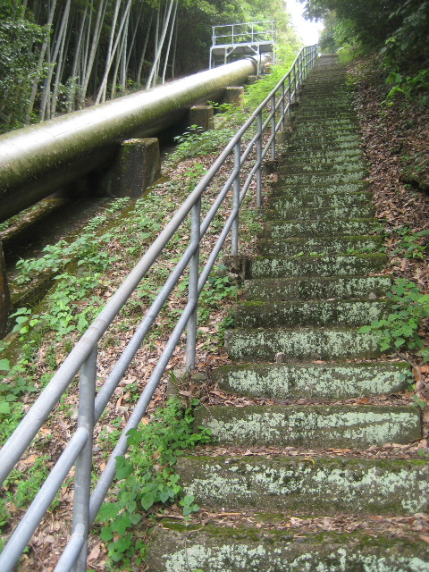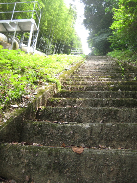 それに引き換え、ここの階段は最悪クラスだ。直射日光こそ避けられるものの風が通らず、気温も湿度も高くヤブ蚊だらけ。そして恐ろしく急だ。