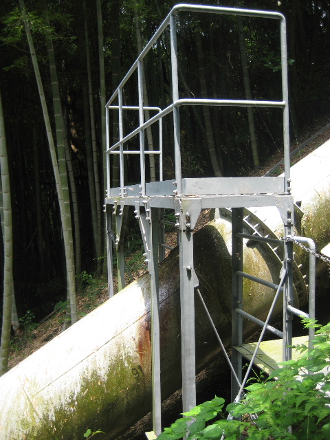 あのタラップ上に昇り、真上と真下を撮影すれば水圧鉄管の面白い写真が撮れるだろう…