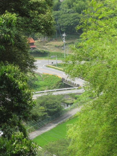 先ほど驚嘆と共に初めて水圧鉄管へまみえたとき進んだ地区道も、今やこんなに遥か下の方にあった。[11:30:22]