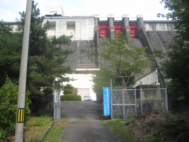 写真は発電所入口から撮影したダム堰堤および発電建屋である。
