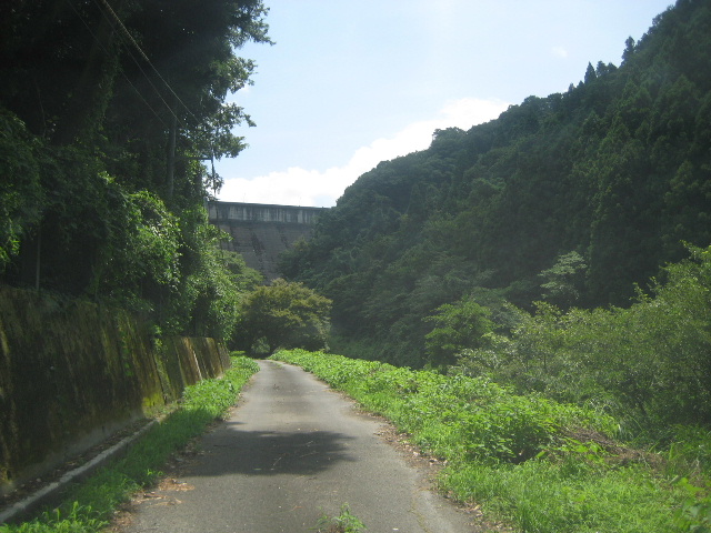 最後のカーブを曲がると菅野ダムの堰堤が見えてくる。