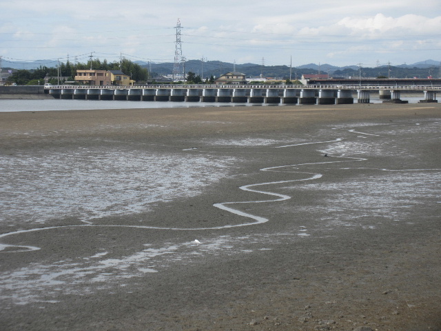 干潮時の厚東川にみられるぐにゃぐにゃ。(遠景)