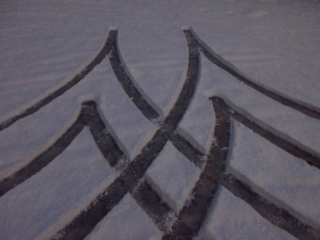 雪の日に駐車場で車を転回させたとき生じたフォルム。