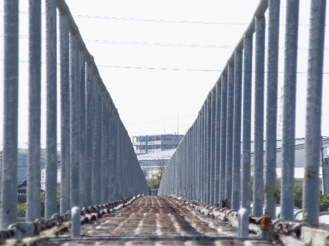 鋼鉄製の管理通路と手すりが作るMのフォルム。