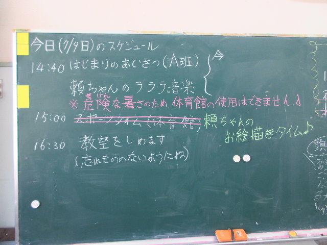 この日は体育館での自由遊びが予定されていたが、熱中症アラートが出るほどの暑さだったため屋外活動の自粛が勧告された。「使用できません」では強い口調に響いてしまうので、敢えて「使用できません