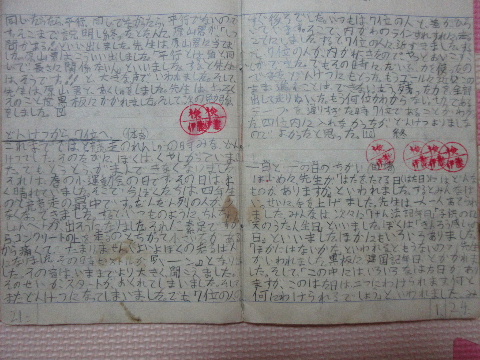 また、日記ではないが小学3年生のときより学校の任意課題として出される「勉強日記」なるものがあった。教科を限定せず自分の中で印象に残ったものを自分の言葉で書き表すというシンプルなものである。制約がないため学校の勉強に関係するならいろいろなことを書くことができて、教諭は言葉ではなく検印をいくつか押すことで評価に代えていた。級友同士で検印の数を競うこともあったようで、適度な刺激になっていた。これより以前の小学1〜2年の作文ではこれといった評点はみられないことから、小学校中学年時の勉強日記が現在のような執筆好きの土台となっていることは自分としては確実と考えている。勉強日記は相当に重要なものと思っていたらしく、他の日記ノートと共に保管されている。