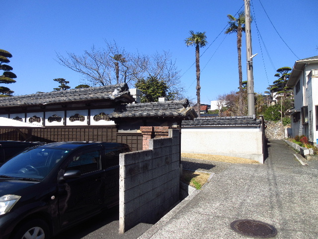 細い路地を丹念に歩いて調べたところ、他にもやや小振りな高さのトウジュロが1〜2本敷地に植わっている民家があった。シュロであることは予備知識として持っていたが、トウジュロという名称の外来樹であることが分かったのはこのときである。