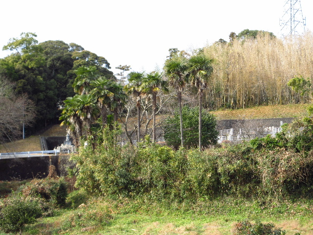 県道沿いにはトウジュロが見られる場所がなく、高良氏が発見した場所が何処かを後日探し歩いた。そして小串墓地(宗隣寺の東側にある墓地)の近くに割とまとまった本数が植えられているのを見つけた。