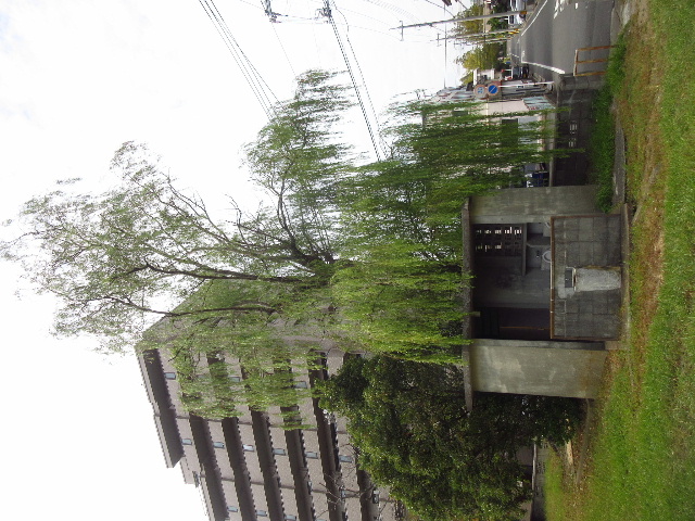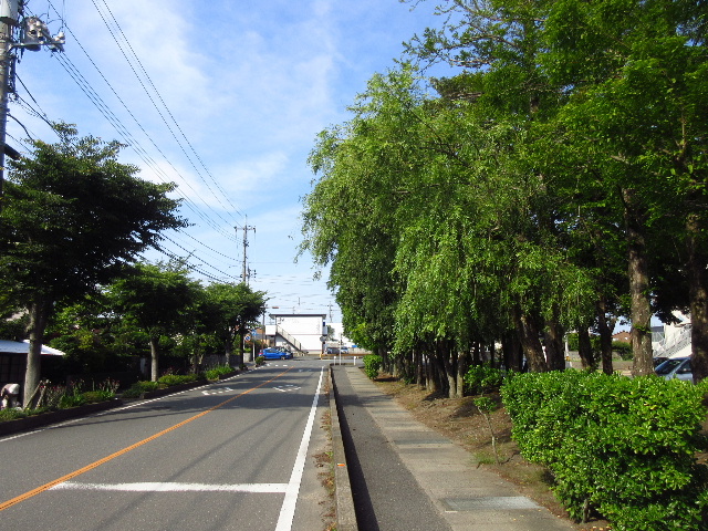写っている街路樹がヤナギであるとは言い切れないが、このような感じで道路の両側にヤナギがあった。それは市街部の道路の割とありふれた風景だった。よく知られているように、現在では街路樹として植えられたヤナギは、少なくとも市街部には一本も遺っていない。冒頭のヤナギの事例は、街路樹としてではなく俵田体育館の敷地に植えられているものである。