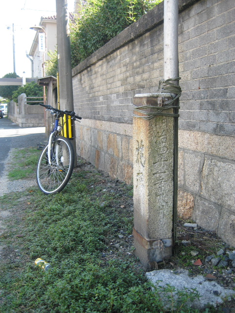 ・2023年9月24日、近くのお店へ買い物に来た足で市道沿いを撮影してこの石碑の追加画像を撮影した。撮影中に地元在住者とみられる方が自転車で通りかかり、暫く話をした。この石碑の存在は知っていたが読み方や何のためのものかは分からなかった。また、接して建てられているポールは掲揚目的で使われておらず地区の話し合いで取り除こうという話になっていることを伺えた。