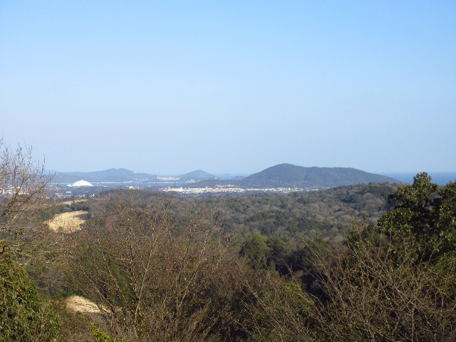 平坦なエリアの端は高い樹木が刈り払われているため、眺望は意外に良い。東側は足元の万年池を通して日の山や阿知須方面が眺められる。