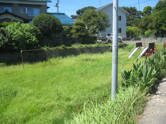 地区道より一段低い場所に緑地帯というか草むらに覆われた空き地がある。