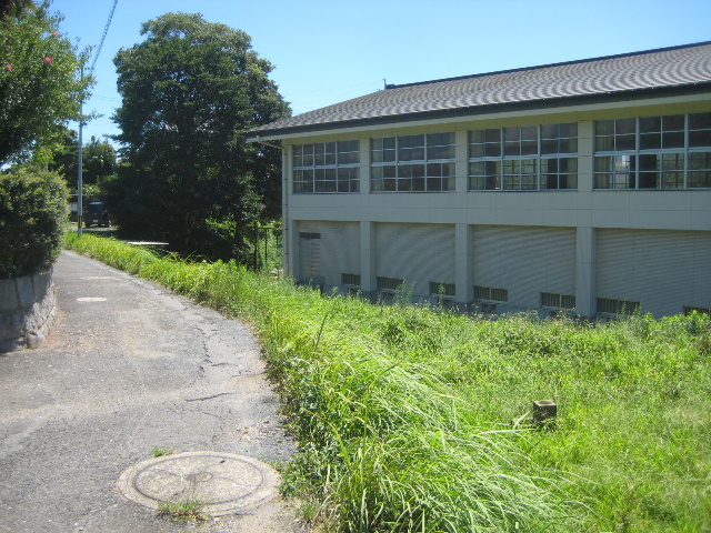 慶進高校の武道館前を過ぎた先に左への地区道分岐がある。