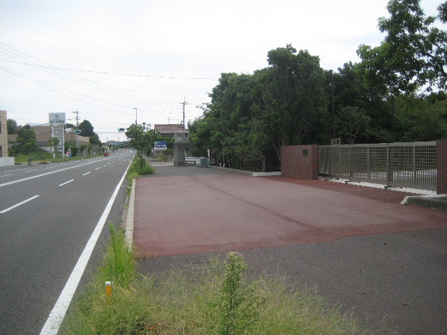 門の裏側から撮影。進入路ながら幅が充分に広く、車道と歩道も分離されている。