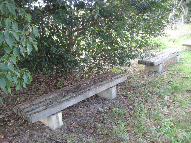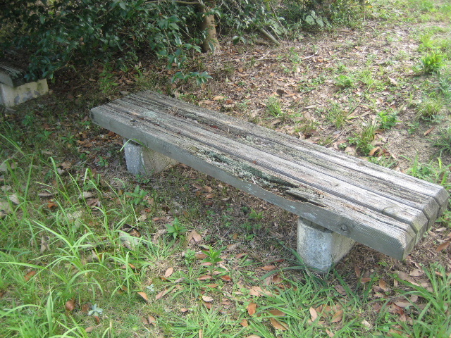座る部分は昭和中期に流行った冷たいコンクリートとか粗末なプラスチック製などではない。自然木を加工して造られた本格的なベンチだ。しかし表面の防水加工や防蝕処理をしていなかったせいか、自然木であることが裏目に出て朽ち始めている。