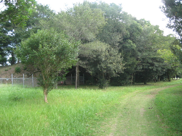 完成した公園なら、工事現場に特有の垂木の杭とかトラロープを完全に撤去して一般公開されている筈だ。それが入口部分にそのまま遺されている。
