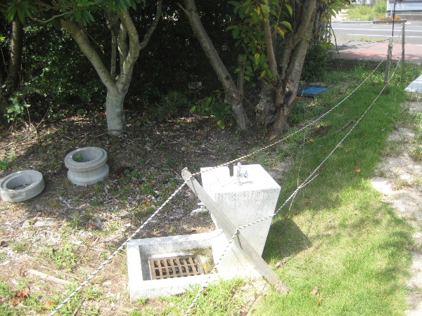 公園にありがちな水飲み場も、どういう訳か入口に対して斜めに据え付けられている。いや、これは正規に設置されたのではなく単に放置されているだけと言えるだろう。