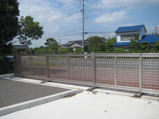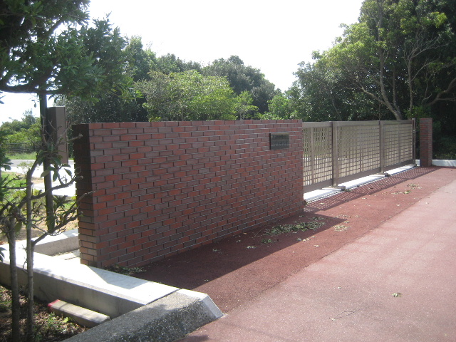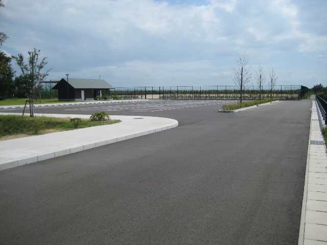 > まだ整備途中のせいか亀浦公園の県道に面した入口は閉鎖されている。公園の機能が異なり利用者が