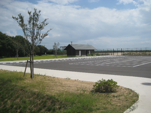 歩きだったので現地まで行きはしなかったが、駐車場の一角にトイレも設置されている。その奥が真砂土の敷かれたグラウンドだ。これほどの広さなら地区対抗のソフトボール大会にも充分対応できるだろう。
