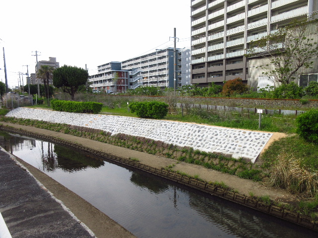 ・2021年3月に春日公園が塩田川に接する護岸部分の補強工事が始まり、割石とコンクリートで固められている。