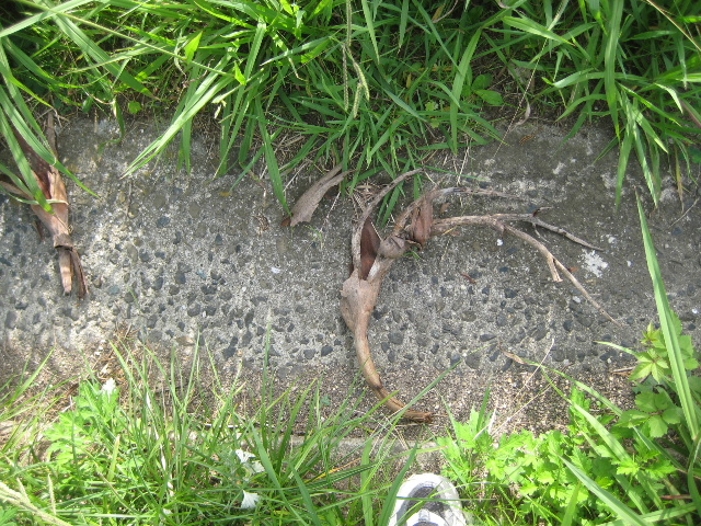 市道の終点部分から更に先を歩いてみて、足元に道路側溝の痕跡のようなものを見つけた。