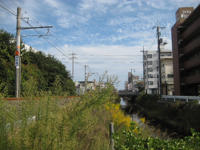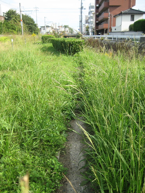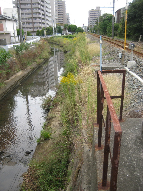 先へ進むにしたがって塩田川が線路際へ寄ってくるため公園とされる領域は狭くなってきた。