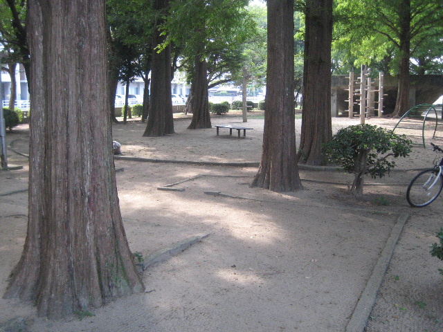 園内に太い木が多いので、公園と言っても例えば野球をするのには向いていない。ヒット性の打球は高い確率でどれかの幹に当たってランダムに跳ね返り、ボールを探すのに苦労させられるだろう…^^;
