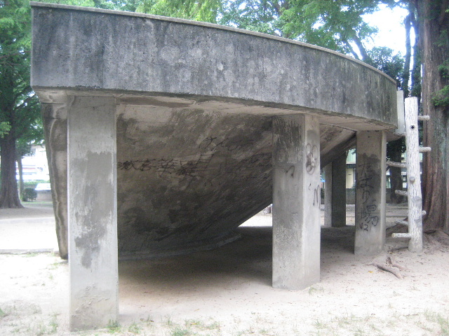これは半円形のシンプルなコンクリート斜面で下が砂場になっている。滑り台のように滑ったり駆け上がったりするのだろう。