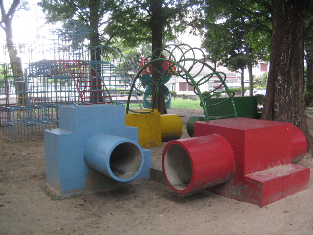 遊具が原色系の色彩にペイントされているのに戸惑った方があるかも知れない。