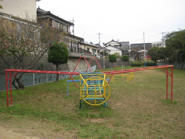 私たちが遊びに来た当時はこの児童公園はまだ完全にはできあがっておらず、園内に敷き詰めるための真砂土が至る所山にして置かれていた。[4]児童公園の標示板が昭和51年3月なので既に入口の門構えはあったと思われるものの遊具は一つもなかった。