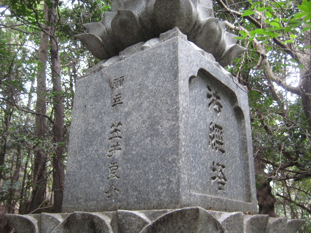 側面に「法經塔」の文字が見える。例の書物では法篋印塔と紹介されていた。篋の字は画数が多く陰刻で表現するのが困難だったので簡略化された字を充てたのだろうか…