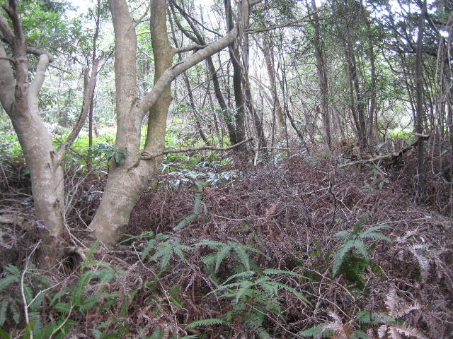 この場所の荒廃ぶりも相当なものだった。高さ1m程度の石積みで仕切られていたのだが、場所によってはその石積みさえ半分以上覆い隠すほどの木の葉が積もっていた。平成初期出版の書物でも藪に包まれた写真が掲載されていたのだから無理もないだろう。