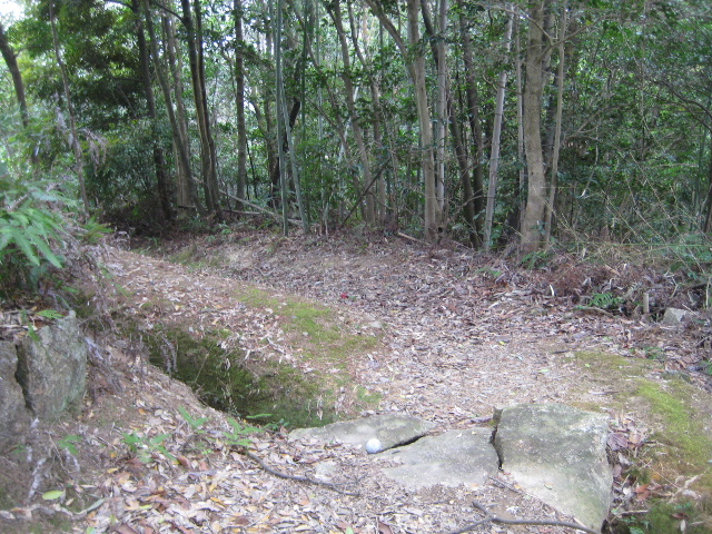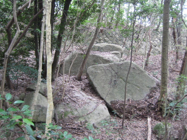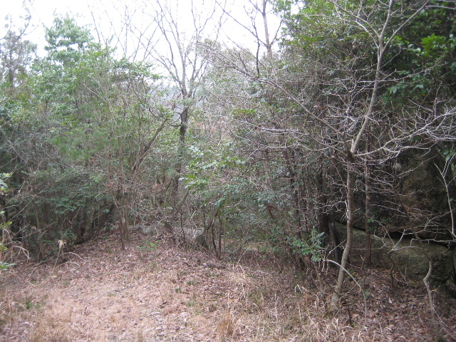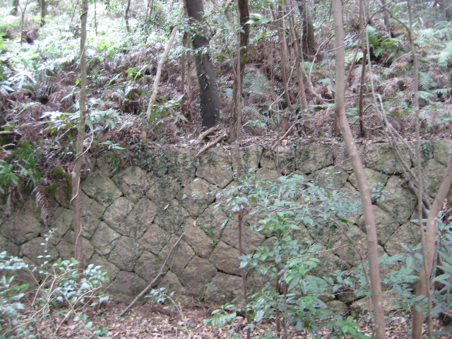 公園から引き返す筈の途中の道に再び山の方へ向かう枝道があった。その先には何かの遺構の存在を思わせる大きな石積みが見えていた。