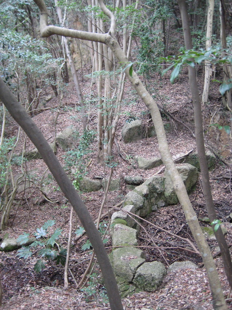 実際そこは沢の先端で、土砂が流れるのを抑える目的で築かれた石積みらしかった。その他に人工物はなく、自然の大岩ばかりが目立っていた。