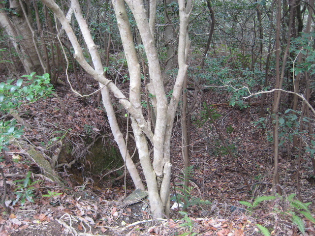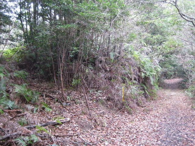 ここだけ妙に幅が広くなっていて左側に分岐がありそうな気がした。しかしあるのは藪だけで踏み跡はまったく確認できなかった。幅が広くなっているのは、軽トラなどが乗り入れたときの転回場所になっていたからだろうか。