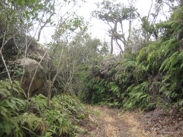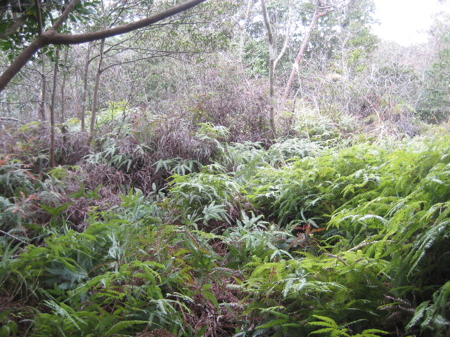 このことは踏査において自分が藪漕ぎに取りかかるか否かの判定基準にもなっている。即ちシダ類で著しく覆われて足元が殆ど見えない場所には、基本的に踏み込まず諦める。地面が見えない場所を突き進むのはリスクが大きい。潜んでいるハミの尻尾を踏みつけでもしたら何が起きるかは自明だ。何よりもそこまで踏み跡が失われているなら、元から道ではない場合が殆どなのである。