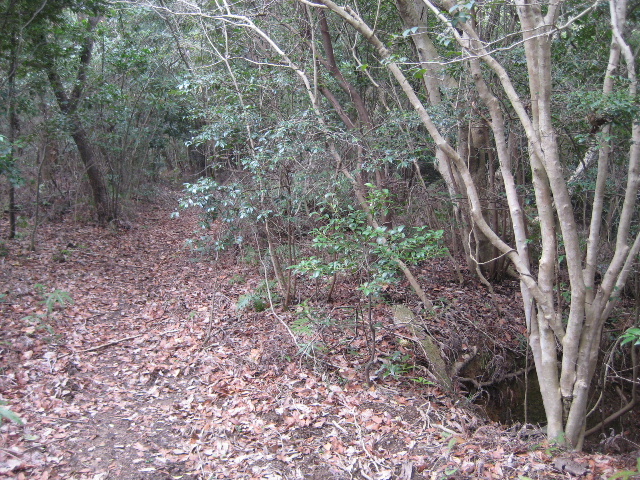 登り坂の途中に右側への分岐がある。戸井ヶ浴池と呼ばれる小さな溜め池に降りる道であることが分かっている。