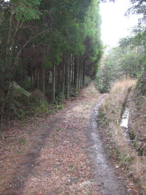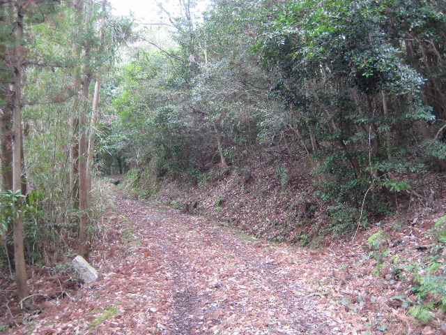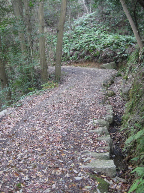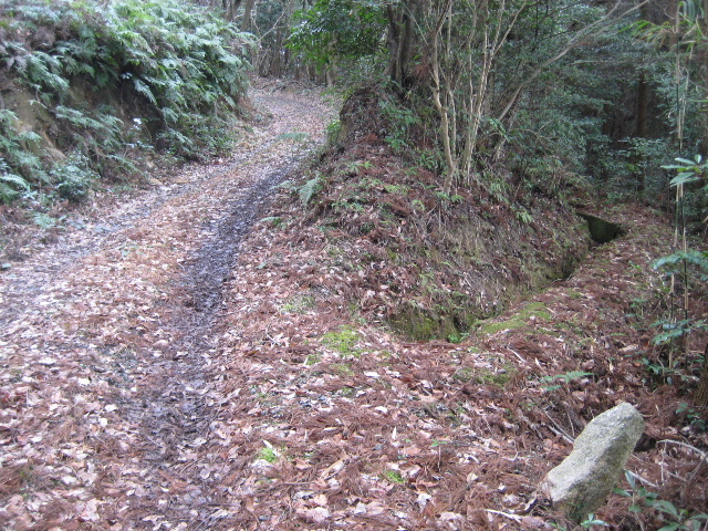 この辺りは山裾を削って造られた道で坂はきつい。