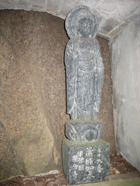 初回踏査で初めて見つけた祠に59番の薬師如来像があり、その台座には伊予国 國分寺と記されていた。白岩公園ないしは設園者の笠井氏は四国と何かの縁があるのだろうか。