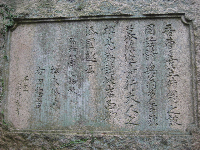 吾曹喜笠井翁之設園茲請與翁多幸欽慕渡邊素行大人之揮毫勤諸此岩面聊添園趣之