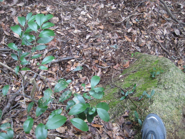 大量に積もって滑りがちな落ち葉を踏み締めて岩の上部に到達した。