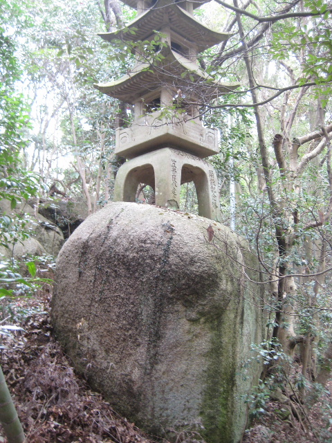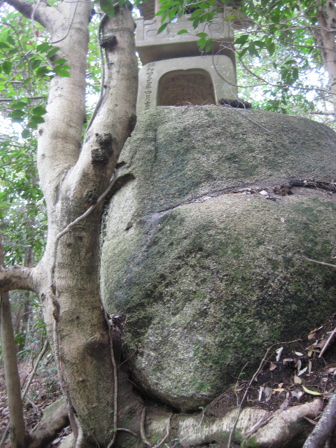 こんな具合で自然岩の上に建てられている。サイズが掴みづらいだろうが、台となっている岩だけで高さは人の背丈を超えている。