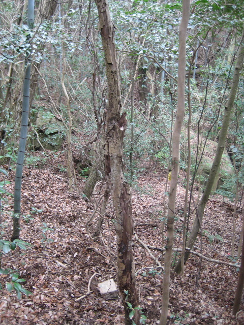 書籍に紹介されていた「大自然」の超大作は、池の前にある広場から更にメインの道を進んだ左手の斜面に聳えていた。初回踏査では逆方向からメインの道を歩いて帰っており、周囲は藪に同化していたために気付かなかった。