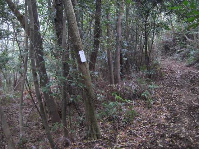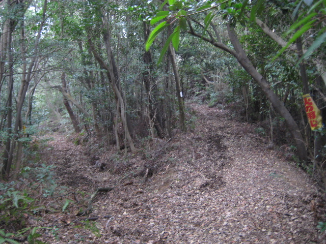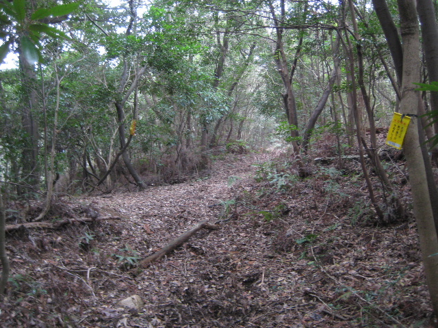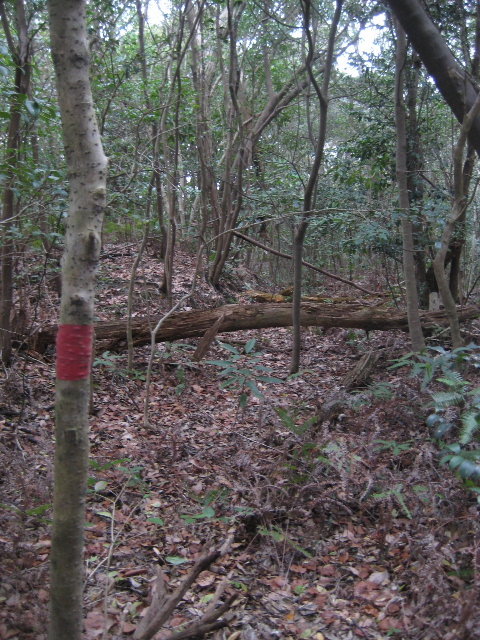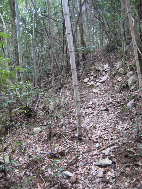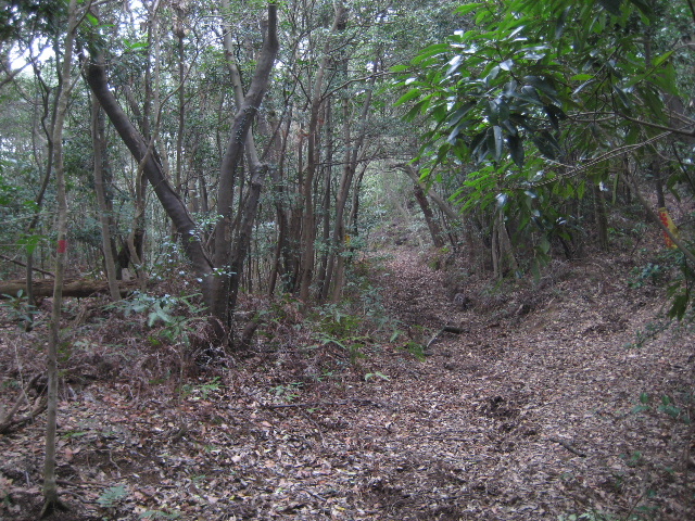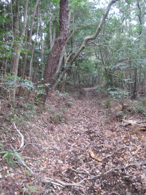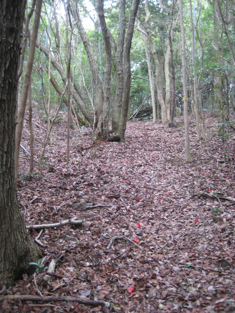 まだ石段のところの倒木が見えている。この辺りは明瞭な山道でありながら石段も石積みも見あたらない。