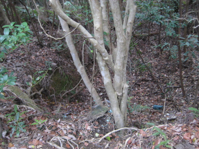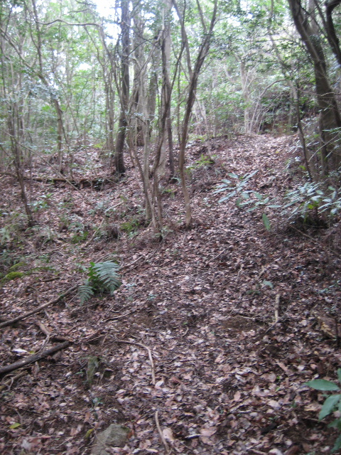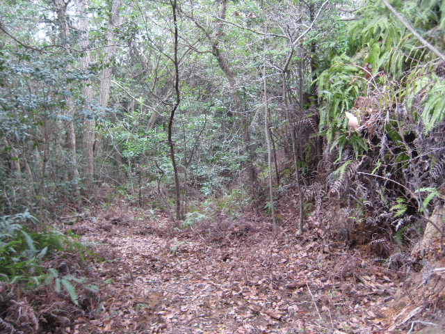 写真では分かりづらいが現地ではかなり明白な道の痕跡に読み取れた。これは「鼻の穴」まで下っていかず内回りする廃された道ではないかと思う。