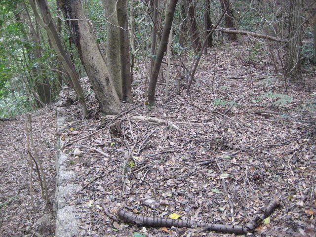 崩落防止の石積みのようであり園路のようにも見えた。これは初回踏査で辿った枝道部分とは異なっている。