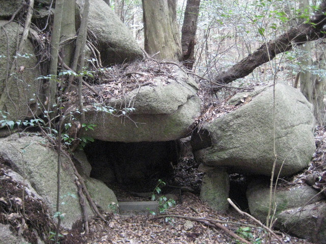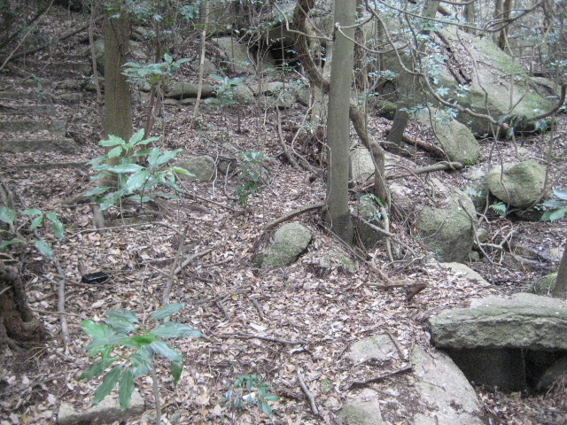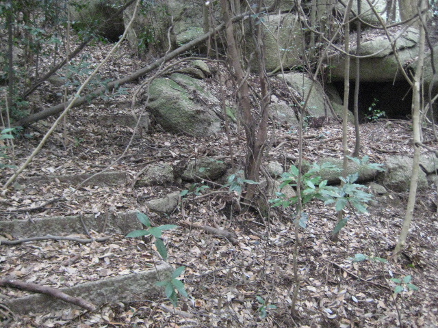恐らく自然のものではない。石段路からその洞窟へ向かう踏み跡が見えていた。やはり人工物だ。