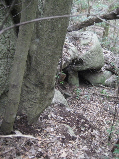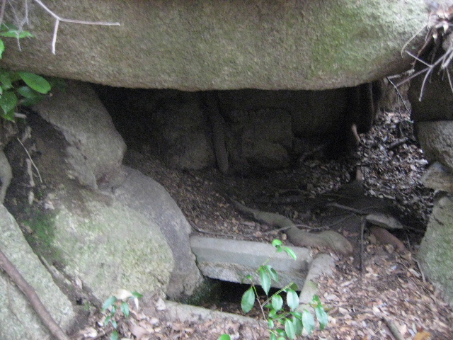 初回踏査でも第二次踏査でもこの場所は見落とされていた。巨岩がいくつか乱雑に積み重なっていて洞窟のような様相を呈していた。なおも不可解なことに、その入口部分には正方形の開口部があったのだ。