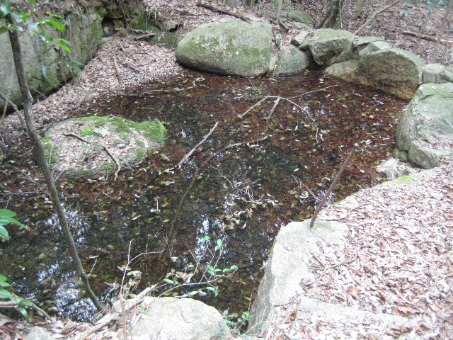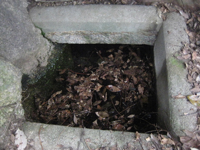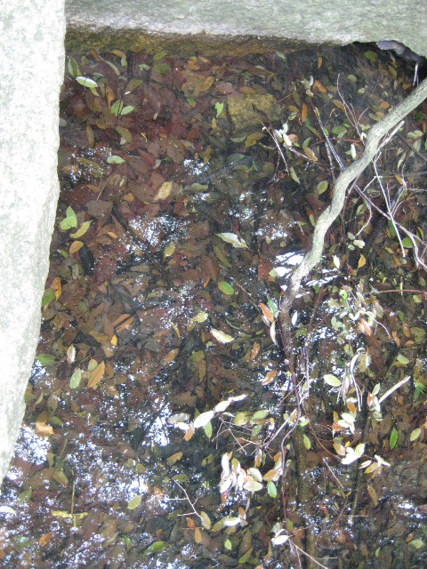大きさはおよそ1m角くらい。中にはかなりの水が溜まっていたが、水底には堆積した木の葉が見えていた。